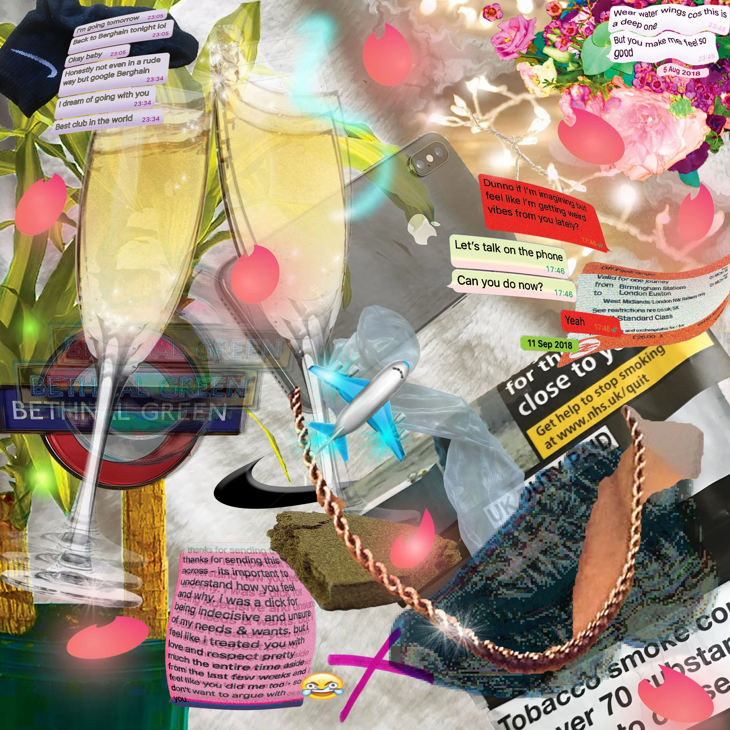 Through the assembly of objects, symbols and texts, the work portrays the essence of a contemporary archetype. The work is an exploration of the mundanity of heartbreak in the age of dating apps, when we are reduced to a throwaway two dimensional profile. I wanted to look at the depth of feelings and connections that occasionally arise out of these initially shallow interactions. The work is peppered with intimate text messages and familiar imagery, conjuring up snapshots of a time period and a person.