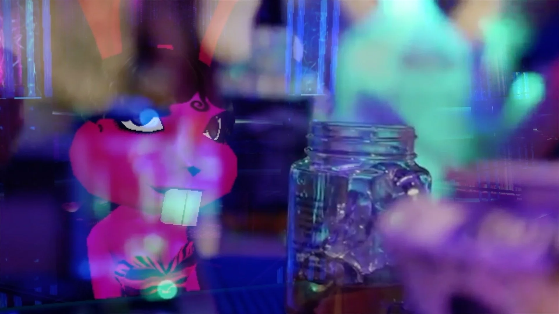 Main Character centres around the Bunny as she experiences the abrupt end of her relationship against the backdrop of her life in a cyberpunk city and her evening gig as a singer. While the event tears a hole in the fabric of her reality it leads to reflection on the nature of being and what can be found under the surface appearance of things. Flipping between 3D visuals, 2D animation and live action footage, the video takes inspiration from cartoons, video games and music videos as a way to navigate the character’s relationship to life.