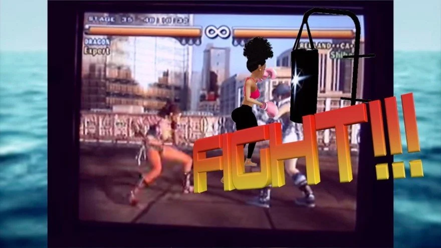 Gym Class deals with the digitalisation of the physical body and the use of technology to influence and regulate the body. Apps and other tech are used to digitise bodily processes and log them as measurable data. My avatar, who is the main subject of the work, embodies anxiety and the quest for perfection often embarked on in online spaces and in customisable video game characters. Youtube workout videos, squats, and twerking feature as ways in which the body is attempted to be brought in line with beauty ideals, particularly pertaining to black women, and the beauty standards of Instagram fitness models. Bernadette Wegenstein’s text The Cosmetic Gaze states how humans view their own and others’ bodies as projects that are there to be improved upon; lying in wait of intervention, modification and technologies of enhancement.