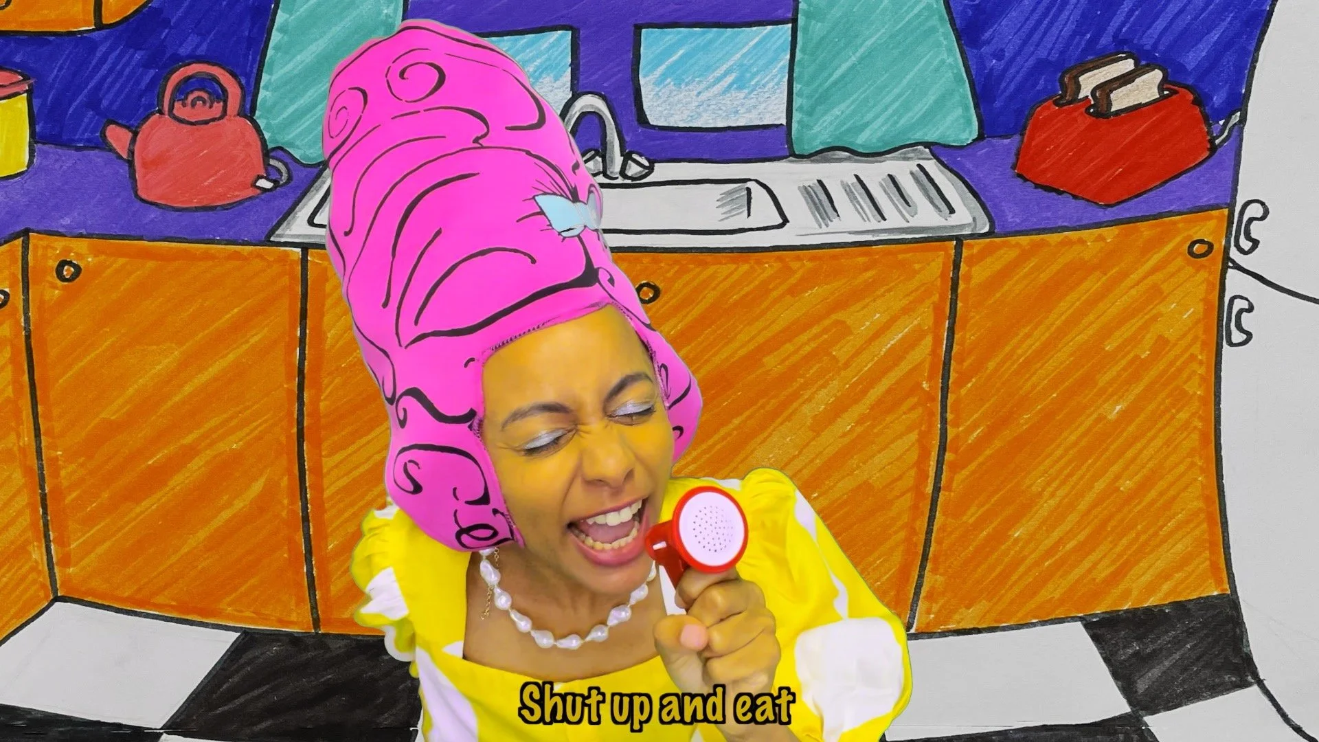 Birthday Cake is based on the 1996 song of the same name by the band Cibo Matto. The song lyrics refer to a woman making a birthday cake for her son, who is turning 30. The cake includes mouldy milk and huge amounts of ingredients that have no place in a cake, yet the mother insists she is making the cake out of love. She is an overbearing presence who believes that more is better- and refuses to believe she is making her offspring sick. I play the part of the mother and the son in the video, which is set in the kitchen as she makes the cake. I am the quintessential cartoon mom and son, exaggerating the relationship between the two.
